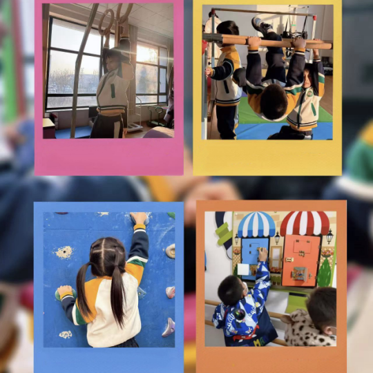 在特教楼内,孩子们化身成了小小探索家,解锁着各种教具的新奇玩法。有的孩子伸手抓住悬挂的器械,双脚离地尝试摆动;有的是小伙伴两两合作,一同抓着横杆完成倒挂的动作;还有的和同伴一起解锁教具的趣味机关......每一个灵动的小身影,都在这场趣味体验中书写着属于自己的成长瞬间。